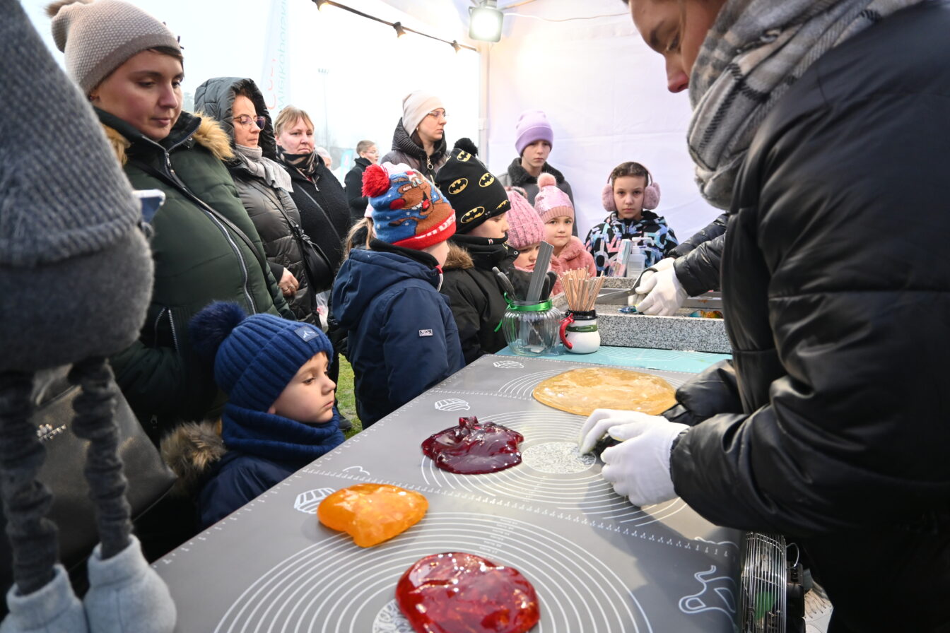 Jarmark Bożonarodzeniowy przyciągał całe rodziny. Dużym zainteresowaniem cieszyły się fotobudka, pokazy wyrobu cukierków i lizaków, karuzele, trampoliny oraz spotkanie z alpakami. Najmłodsi chętnie odwiedzali Wioskę Mikołaja, a świąteczną atmosferę dopełniały animacje i barwne postacie.