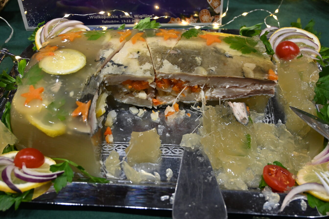🥉 KGW Niedźwiedź (gmina Ostrzeszów) – „Wigilijny karp wędzony świątecznym aromatem w towarzystwie kapusty z fasolą i grzybami oraz tradycyjnego barszczu”